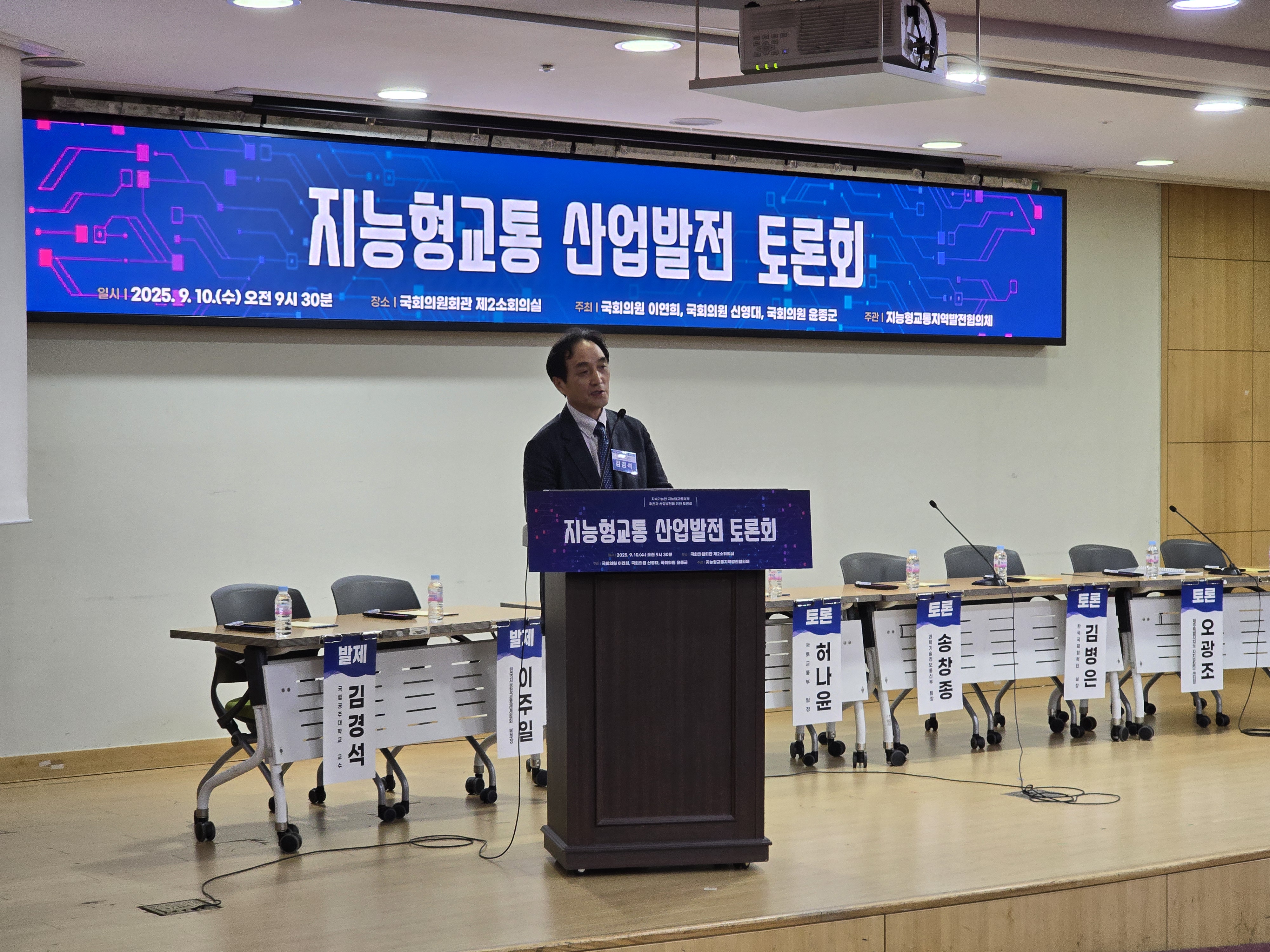 이번 토론회는 국회 국토교통위원회 소속 의원들과 지능형교통지역발전협의체가 공동으로 마련했으며, 정부·산업계·학계 등 약 200여 명이 참석했습니다. |