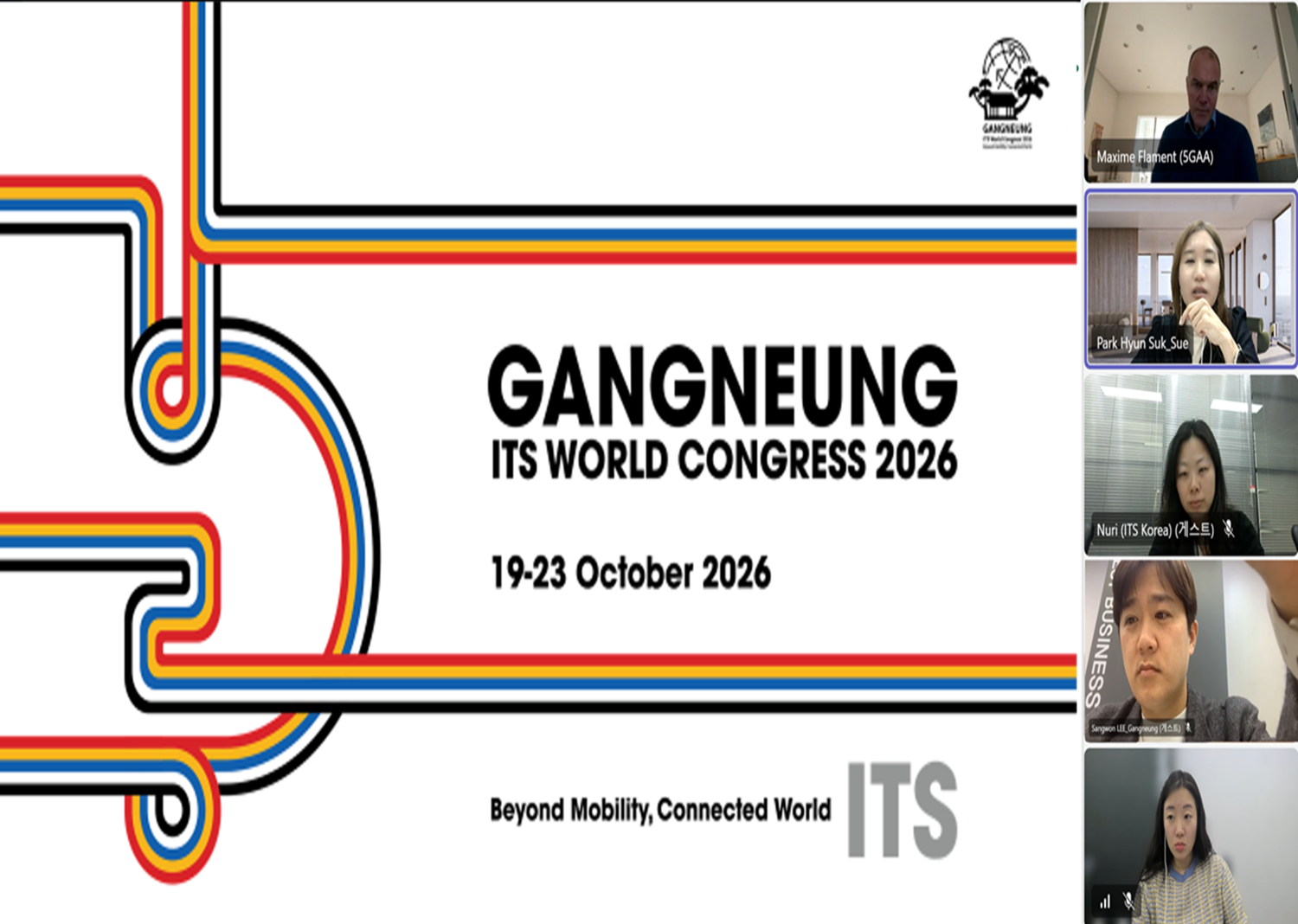 On April 8, 2026, ITS Korea held discussions with the 5G Automotive Association on potential participation in the upcoming ITS World Congress. The exchange focused on onsite sessions and technical demonstrations, including interoperability testing and collaborative C-ITS use cases.